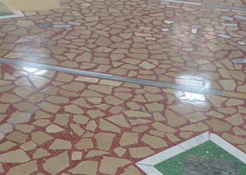 rengi solmuş terrazzo zeminler, özel işlemlerle yenilenerek ilk günkü görünümüne